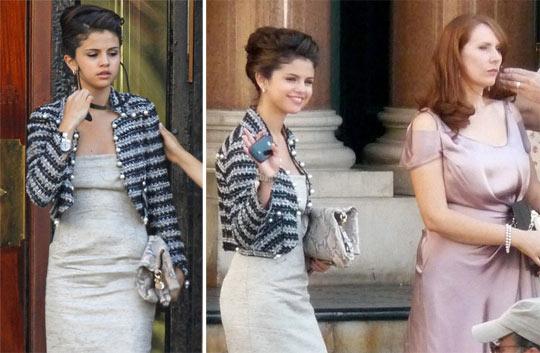 Selena Gomez ainda está na França gravando cenas para o seu novo filme, "Monte Carlo". Ao contrário de antes, que gravava com Leighton Meester, ela agora gravou com a atriz Catherine Tate. A atriz estava com um look mega chique pra viver sua personagem.